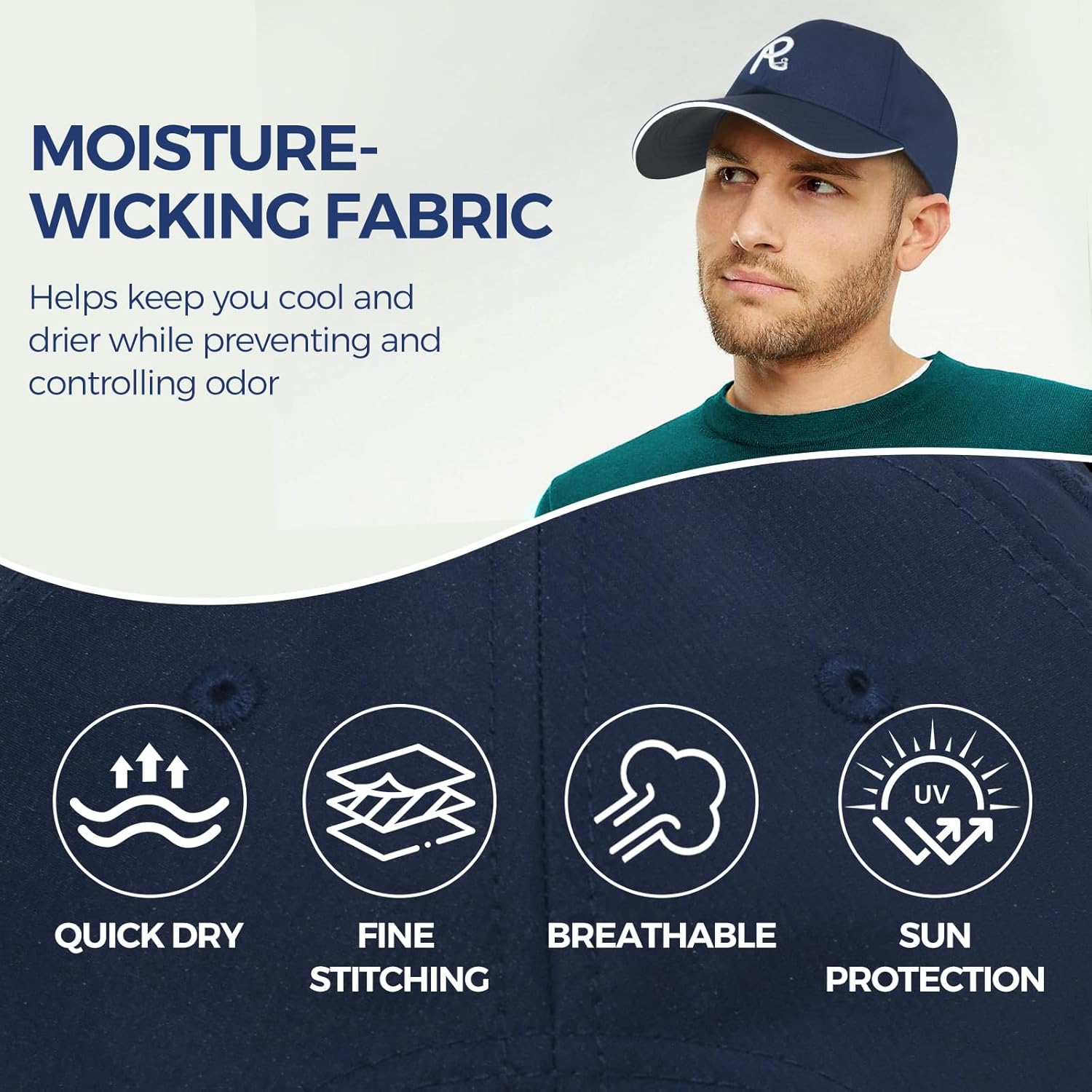 Moisture-Wicking Sweatband & Structured Front Panels – Built-in sweatband absorbs moisture, while structured front panels maintain the cap's shape for a sharp, polished style.